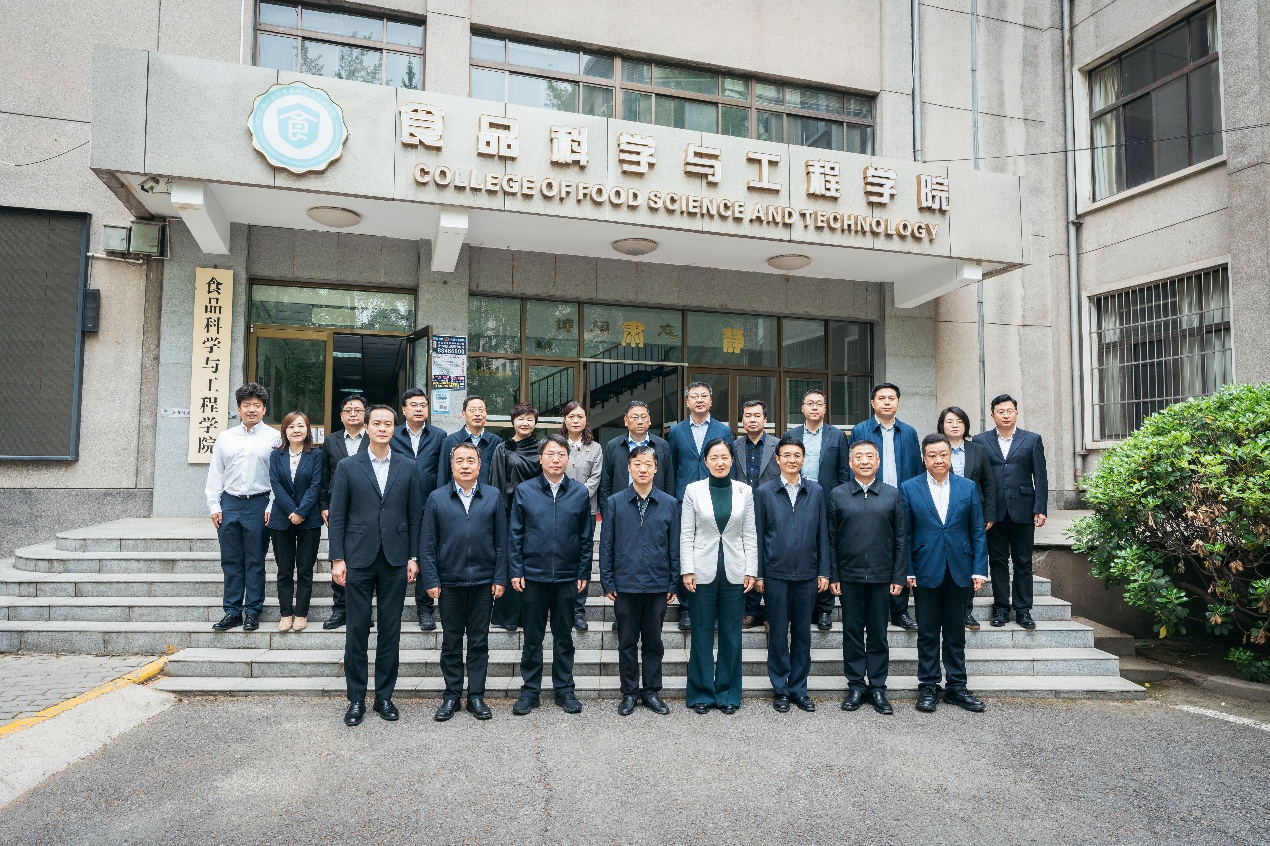 宿迁市委常委、组织部部长、党校校长何泓,副市长陈伟、李亮,科技局、商务局领导,学校相关职能部门、食品科学与工程学院负责人及师生代表参加会议。