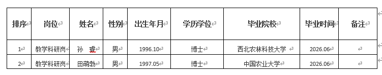 经本人申请、学院资格审查、面试选拔考核等环节,我院拟推荐下列人员参加学校后续选聘工作。本着公平、公正、公开的原则,现将学院本次拟推荐人员基本情况公示: